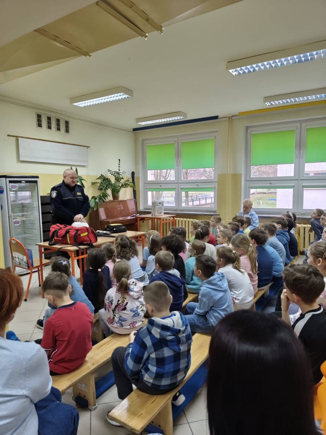 Temat bezpieczeństwa to jeden z najważniejszych elementów omawianych podczas zajęć w klasach młodszych. Dlatego 31 marca uczniowie klas 1–4 mieli wyjątkową okazję spotkać się z panem Wiesławem Barszczem– Strażnikiem Miejskim w Mielcu.