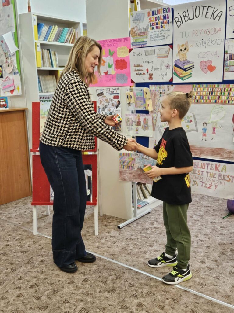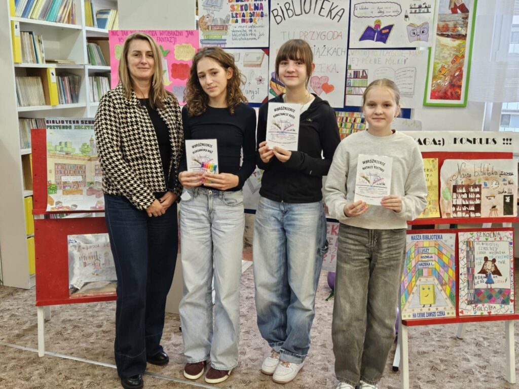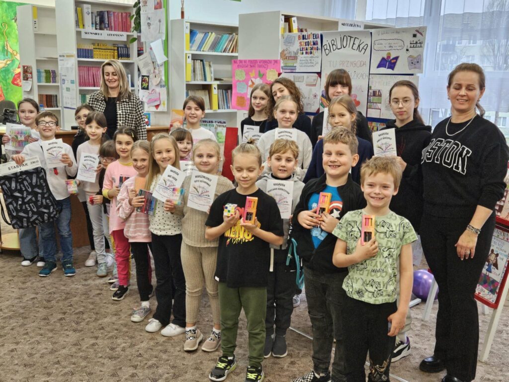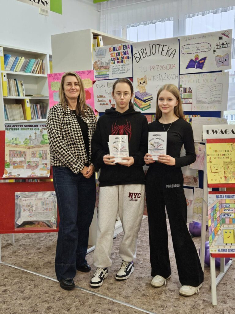 W poniedziałek 1 grudnia zostały rozdane dyplomy i nagrody rzeczowe dla wszystkich uczestników konkursu plastycznego na najciekawszy plakat promujący bibliotekę szkolną. Jury oceniało pracę w dwóch kategoriach wiekowych i przyznało ex aequo miejsce I, II, III oraz wyróżnienia, a także nagrodę specjalną za hasło promujące bibliotekę