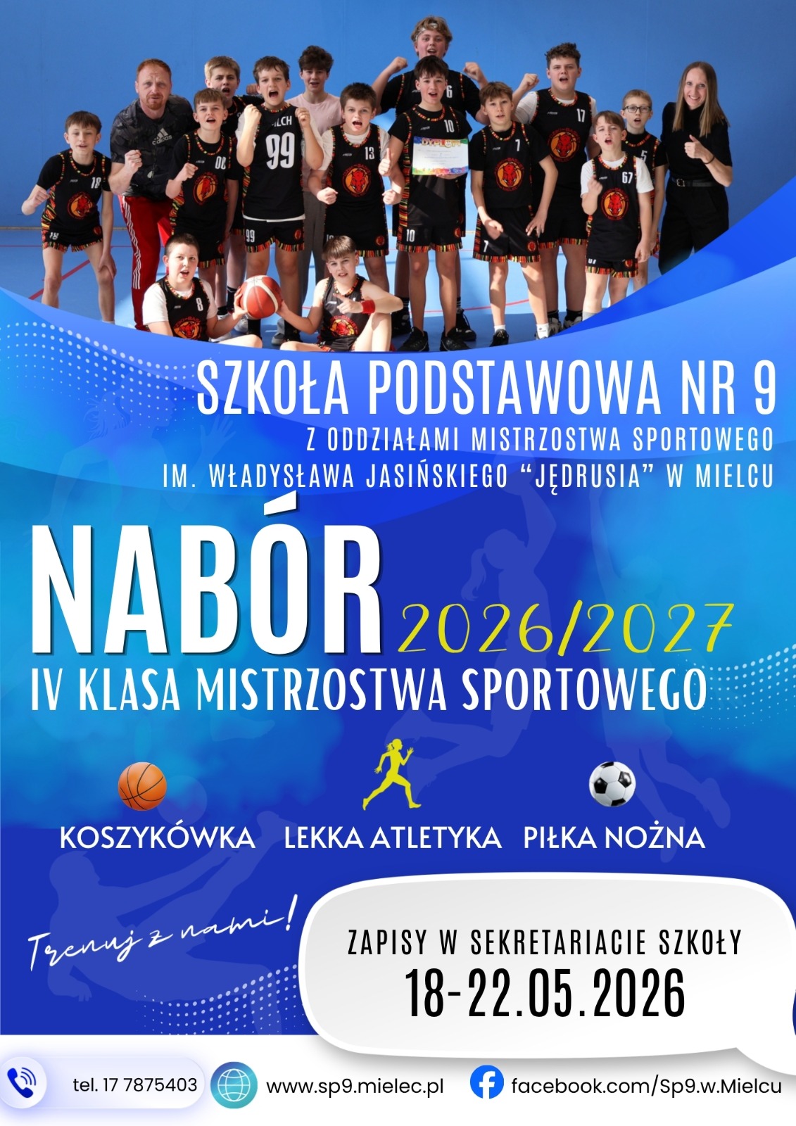 Szkoła Podstawowa Nr 9 z Oddziałami Mistrzostwa Sportowego w Mielcu ogłasza nabór do 4 klasy mistrzostwa sportowego!!!